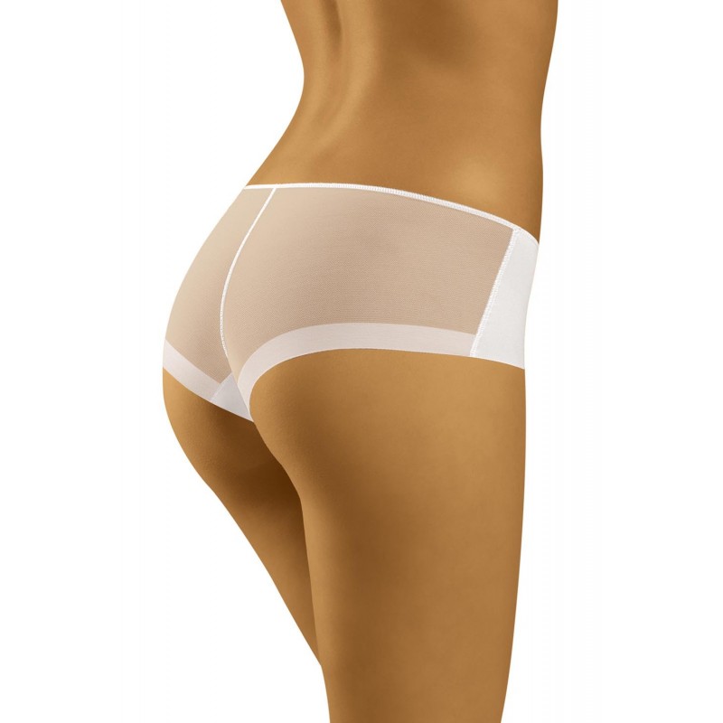 Šortukai su tiuliu Wol-Bar Evita. Priekyje šortukai lygaus trikotažo. Sudėtis: 83% poliamidas, 17% elastanas.
